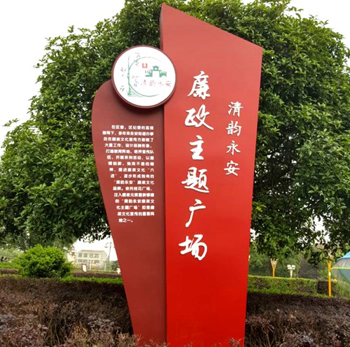 為打造咸安區(qū)廉政主題文化品牌,將原桂花廣場進行改造升級成“清韻永安廉政主題廣場”。在現(xiàn)有場地進行改造升級,打造成園林式的廉政主題廣場。主要分布有“廉政文化主題標識導視牌(入口)、社會核心價值觀(入口)、隔道家風家訓宣傳欄、百廉文化墻、廉文化小宣傳欄、廣場中心浮雕柱、廉官名人錄”一系列設(shè)施。